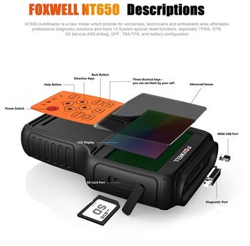 FOXWELL NT650 OBD2 Automotive Scanner Support ABS Airbag SAS EPB DPF Oil Service Reset