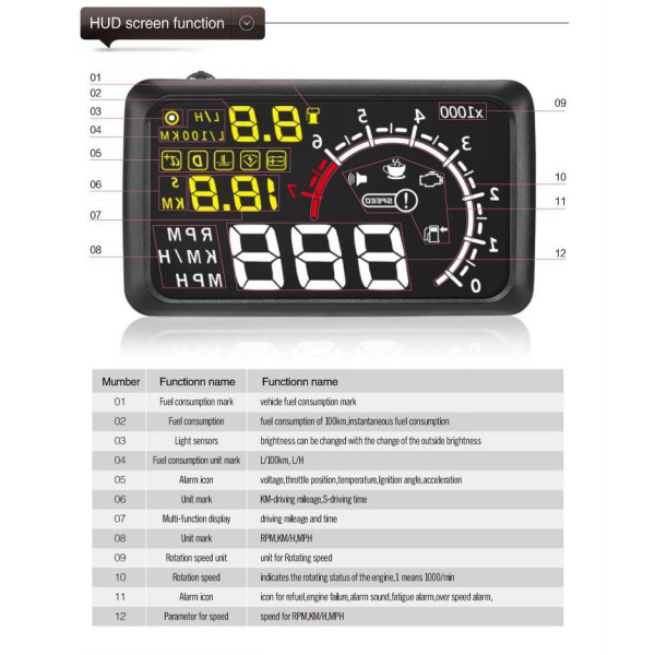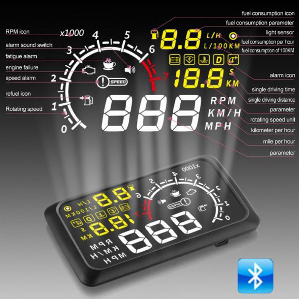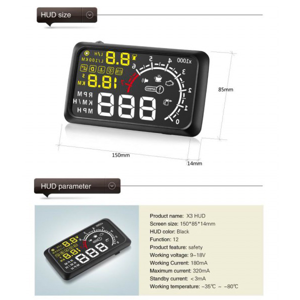 Bluetooth Version 5.5" X3 Large Screen Car HUD Head Up Display With Built-in ELM327 Module