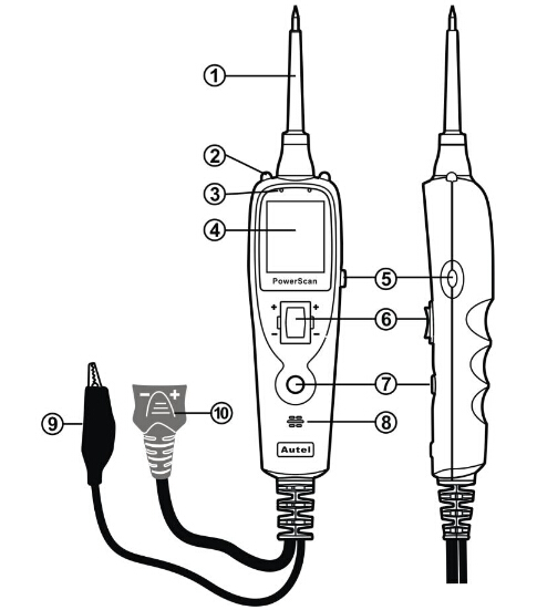 ?Power Switch–Allows you to conduct a positive or negative battery current to the tip for activating and testing the function of electrical components.